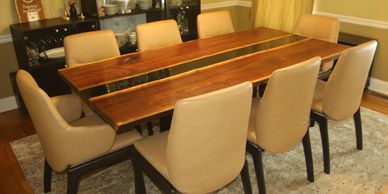 Our dining room only held an 8-person table comfortably, but we wanted to be able to expand up to 12 on occasion. We always wanted a river table for it's unique beauty. Our solution was to add wings that would maintain the look and feel when more seating was needed.
